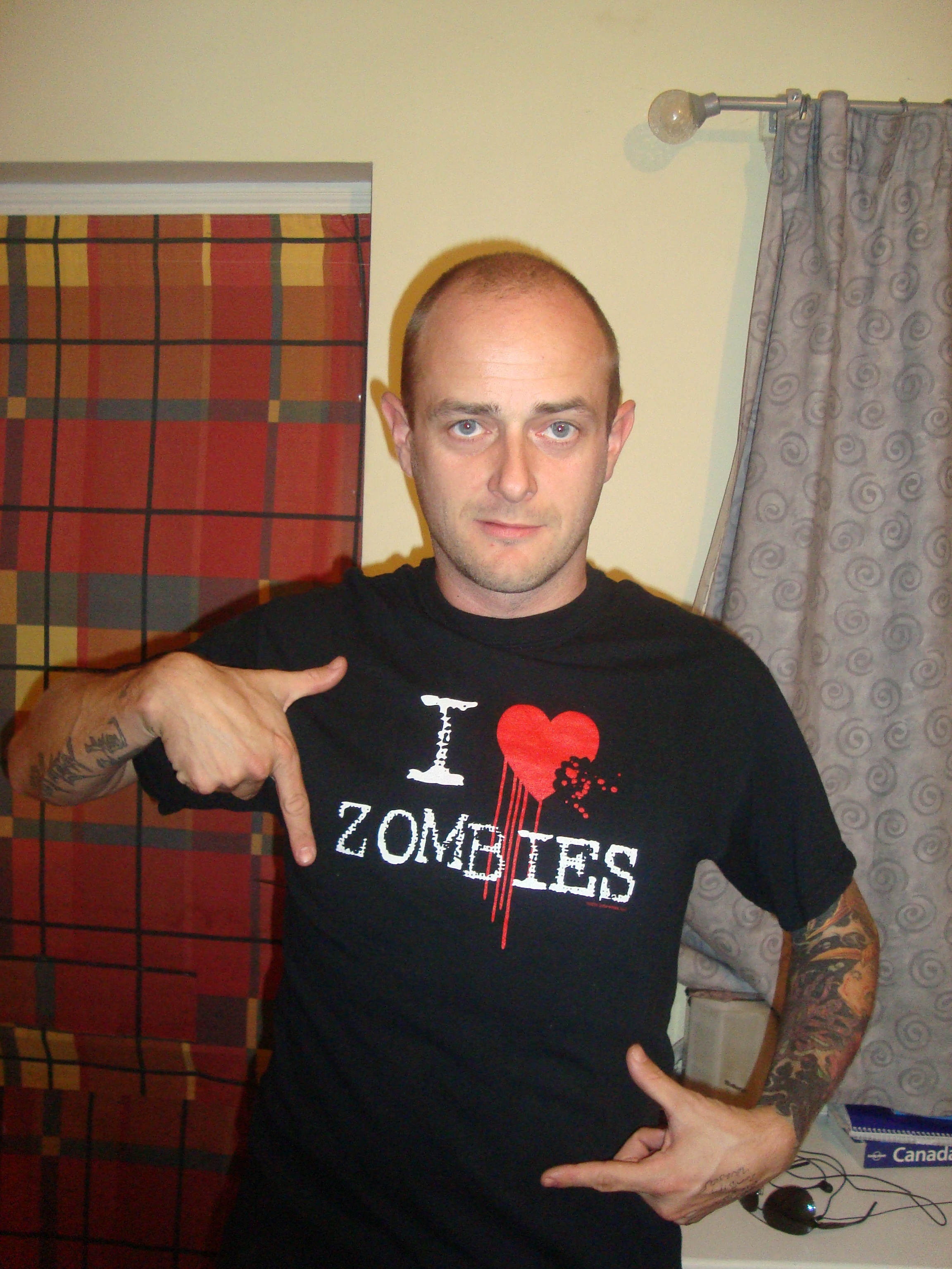 Sure, I know a couple of guys from college who now make films, but they’re not making zombie ones!! I want to get covered in make-up and blood, moan like a… a… two-bit hooker and eat someone! (not unlike aforementioned hooker)