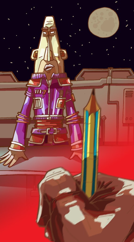 Dudes I really like this – a lot. The pencil was a wonderful twist (ow!) and from a writing point of view nice use of a continuing image to link the narrative together!! Most enjoyable reading – loving the illustrations too they kick ass. More stories to follow eventually I hope!!! 🙂