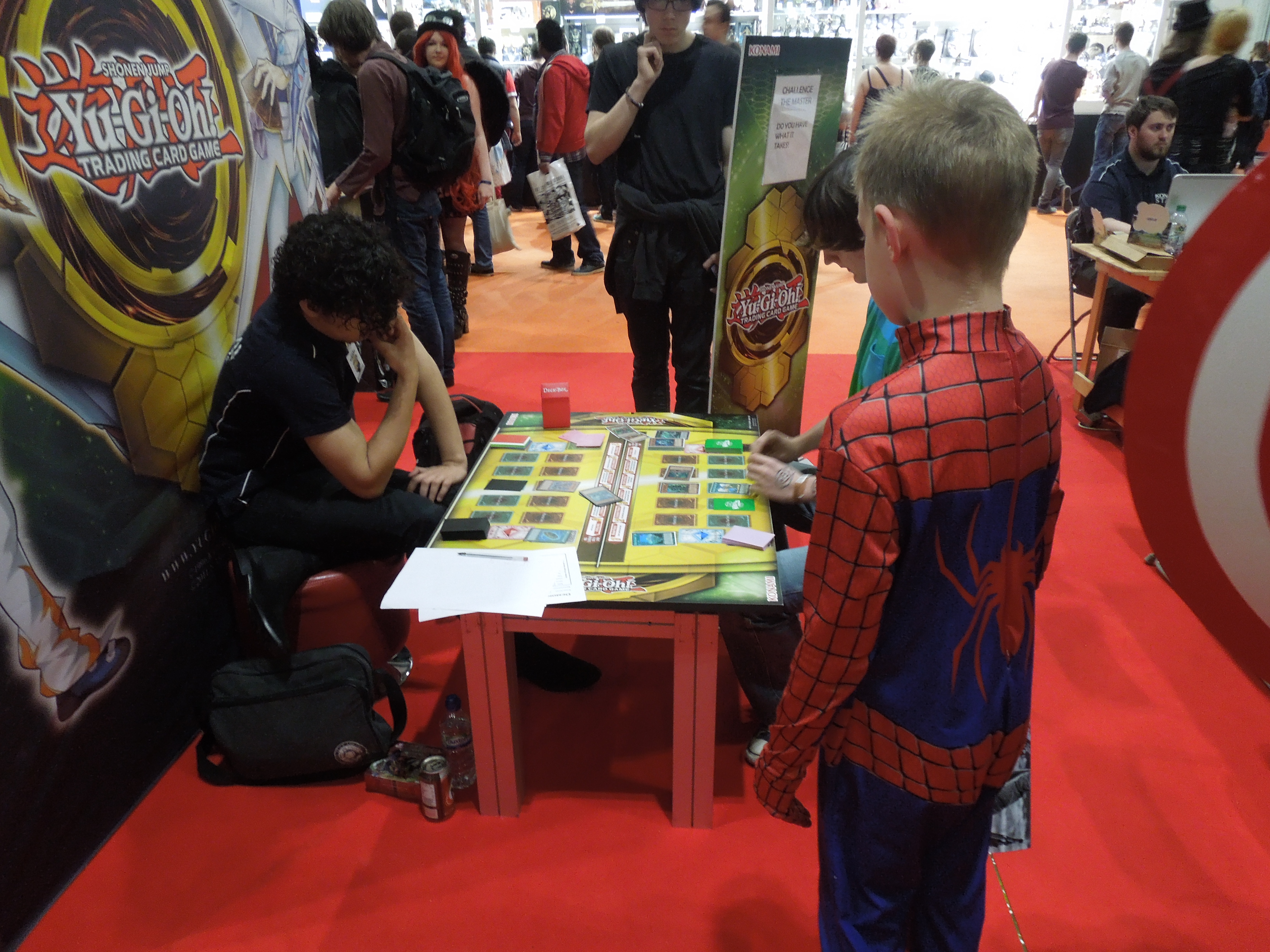 Bam dove into a Pokemon and Yu-Gi-Oh stand (where I was again dragged into photos taken behind him while he surveyed the tables). There was an Asian guy sat at the head of a Yu-Gi-Oh tournament, playing some other kid. Apparently this dude is the best on earth. Bam walked up to him and said ‘I can beat you’. Bam’s got brass, but the Yu-Gi-Master wasn’t biting.