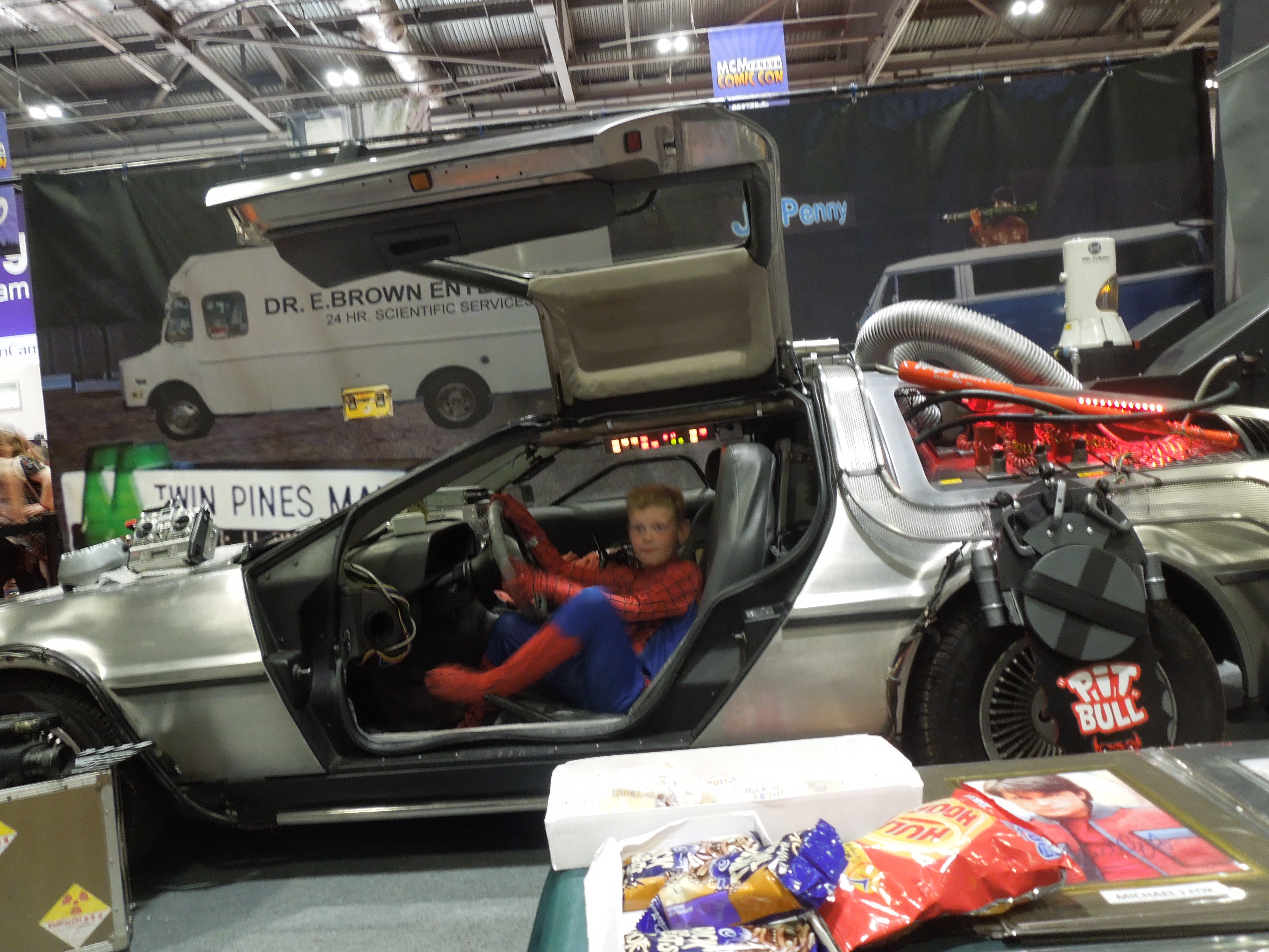 The Mad Max car was present, and I enjoyed that, because I liked the film. But the crowning glory had to be the Back To The Future Delorean in which Bam got a seat and his photo taken. And I then got caught stealing the photographer’s sweets.