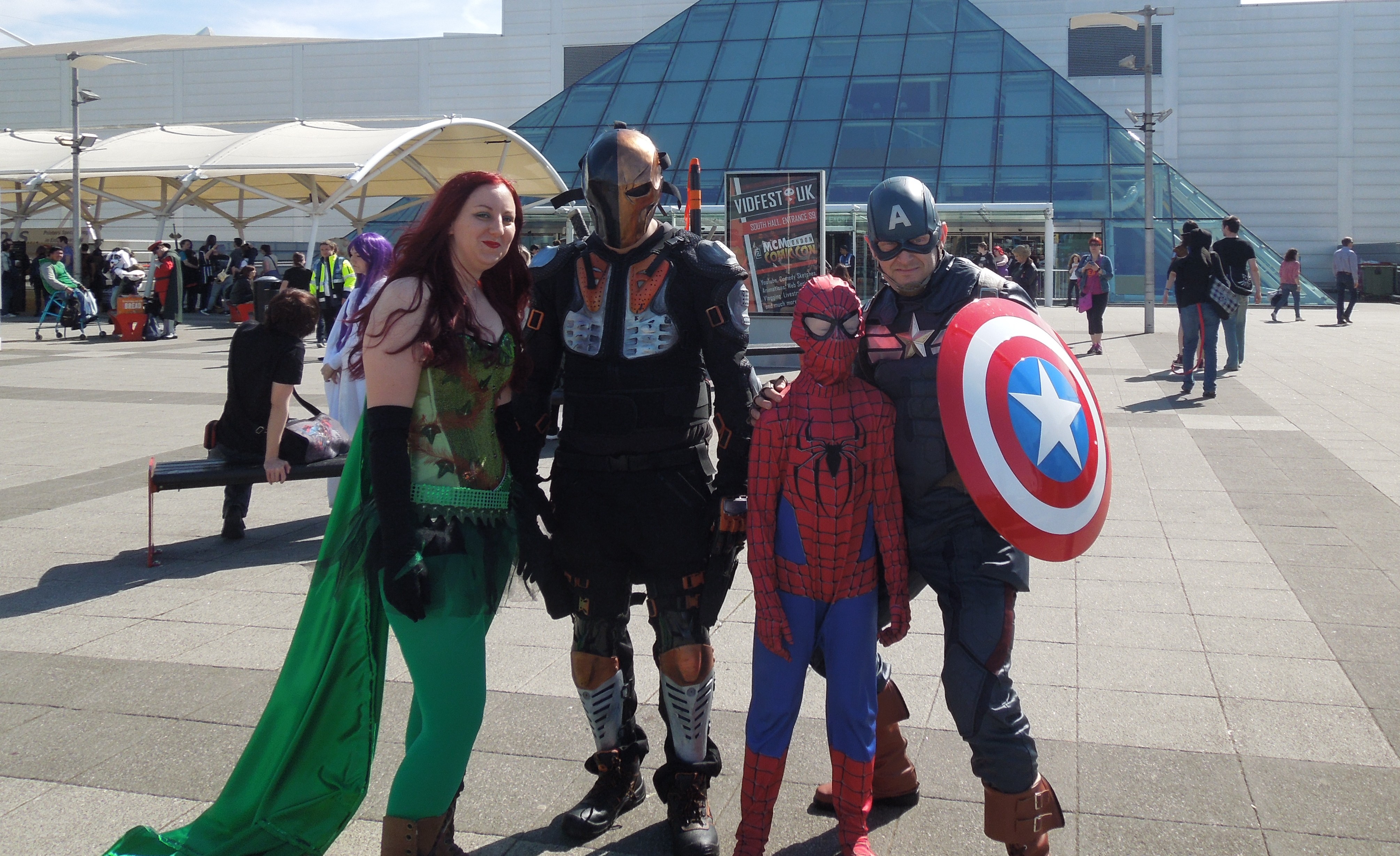 tickets (giving us access from 9.30am) and sauntered past the masses already waiting behind the metal fences. We walked straight into a photo-op with some other cosplayers. Not bad, huh? Now, look closely at Carnage and you can see his nuts through his morph-suit. That’s your day ruined.