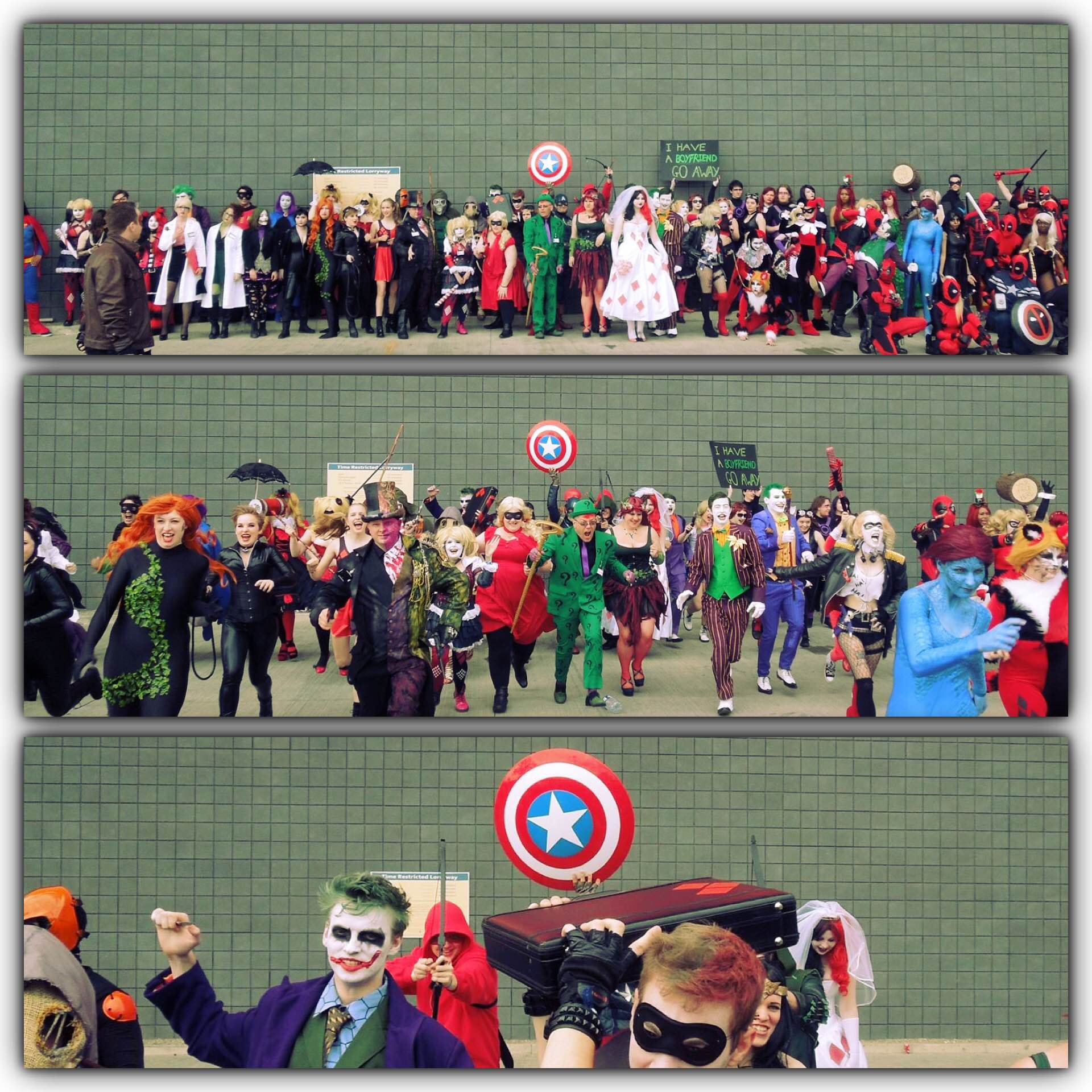 Everyone lined up against the Centre wall; a sea of heroes and villains facing a plethora of photographers. The idea was to run towards the paparazzi as they took lots of pictures to piece together later.