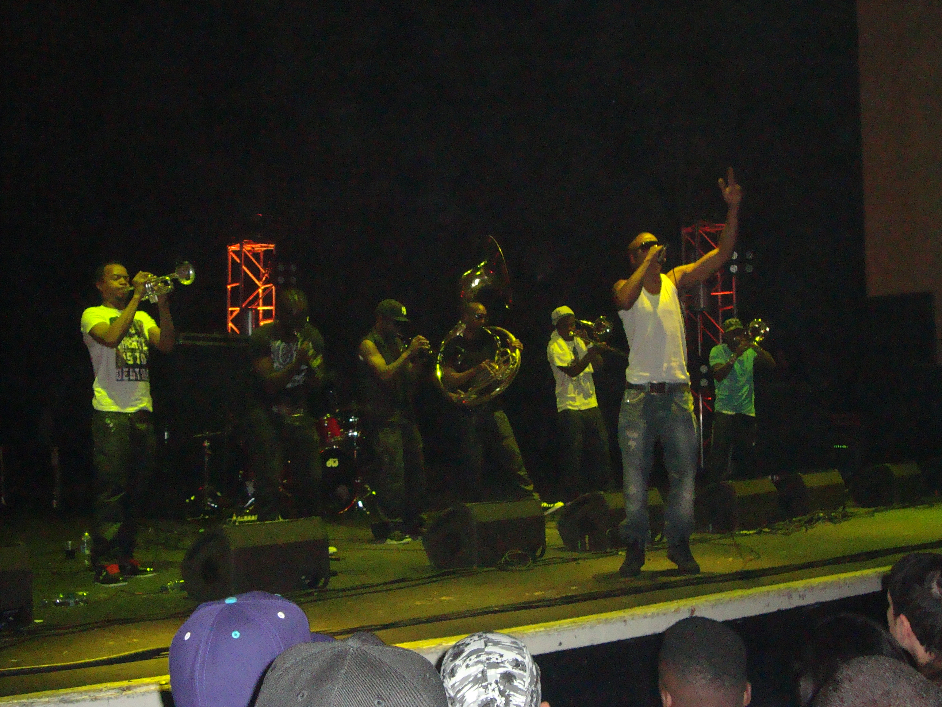 When we entered there were a couple of young lads playing a dj set (Juicy, I think they were called) and these guys were followed by The Hypnotic Brass Ensemble – a group of 8 brothers (same father anyway) who all played brass instruments in Hip Hop flavours! Very impressive…