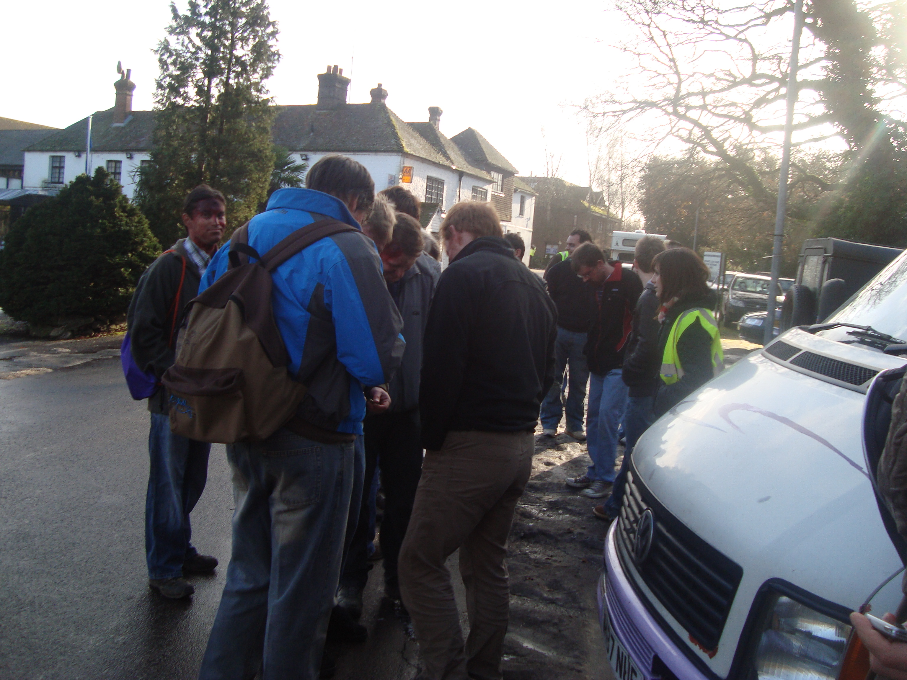 The rendezvous point was the Best Western Hotel at Frensham Pond. In Frensham. Next to a big pond. A big frozen pond. Complete with ‘DANGER!’ sign… by which a man was taking photographs of his child stood on the ice next to it. Twat.